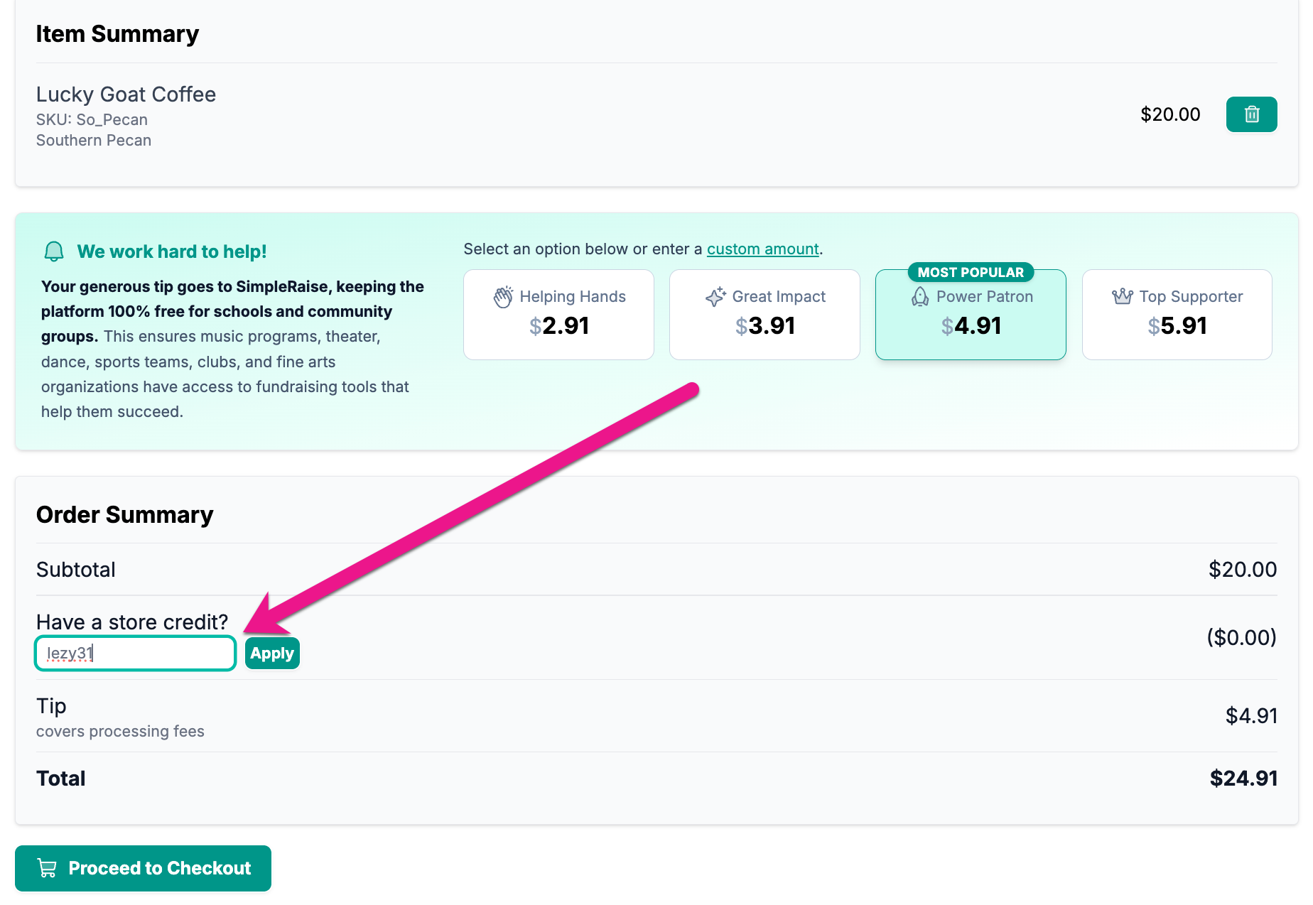 4) Click the "Proceed to Checkout" button and complete the purchase like normal.