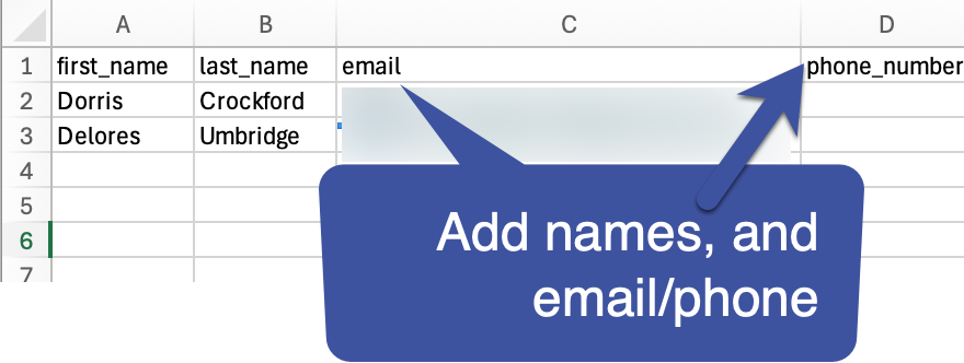 Fill out the template with the names and at least one piece of contact info for these Supporters, and save your template with your changes.