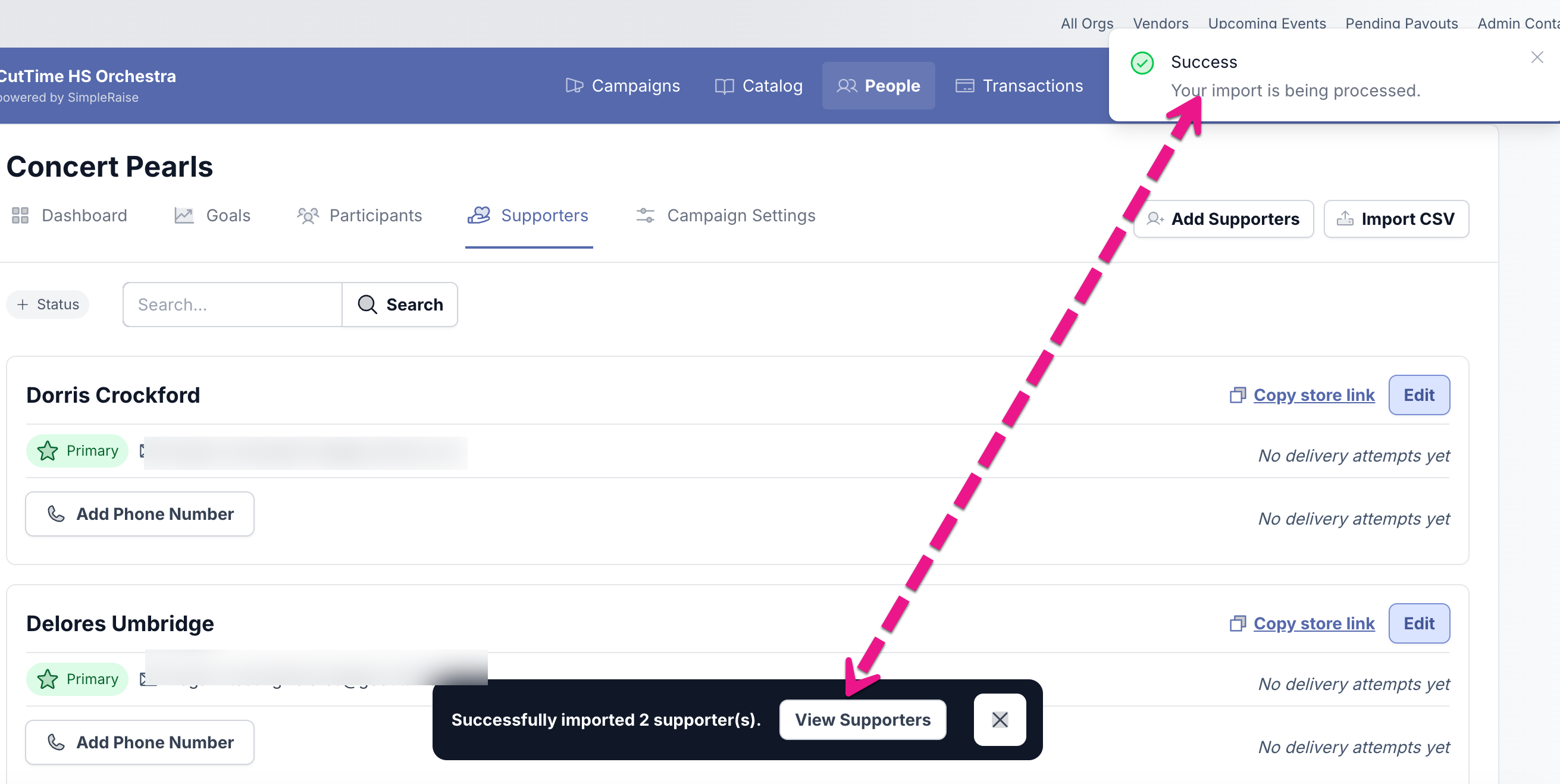 NOTE: Importing Supporters won't auto-send an invitation to your Simple Raise to support your program at the moment.