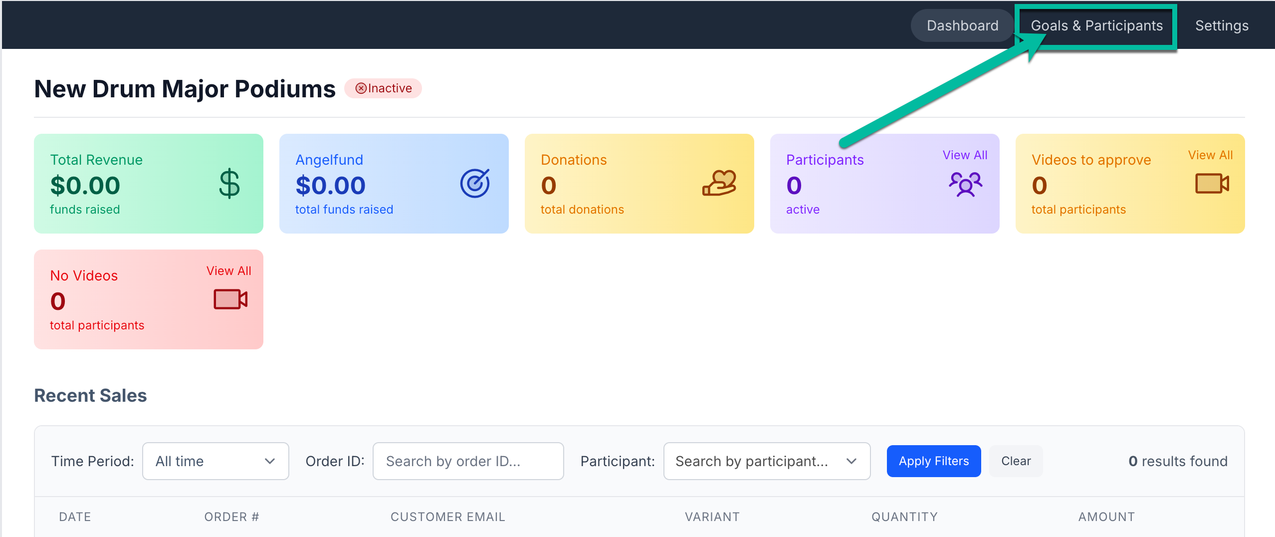 If you have opted to setup a Collective Goal Fundraiser, you can then invite Participants to this campaign. Go to Goals & Participants in your Campaign's page, the follow the steps here to add participants.