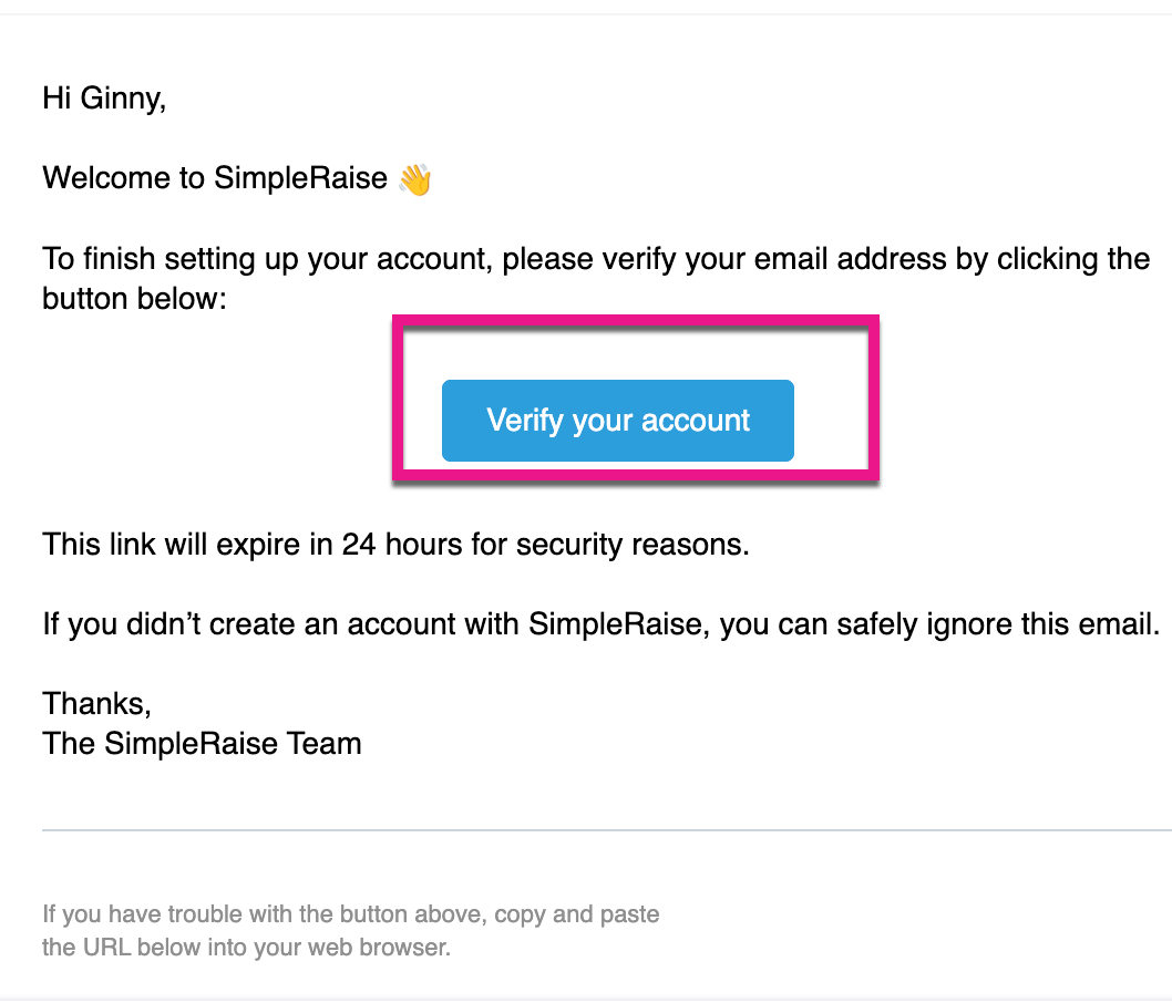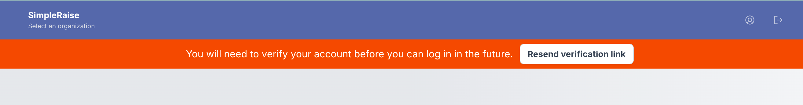 Once they fill out the form and create a password for themselves, they will be logged into Simple Raise where they will see a banner prompting them to "Resend verification link".
