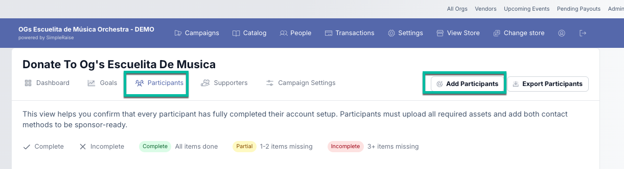 Setting Up Fundraiser Participants in Simple Raise