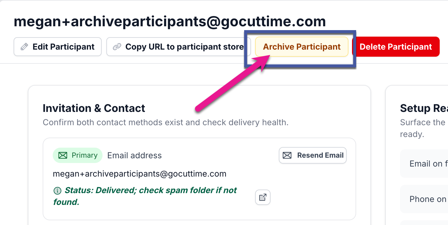 2) On the Participant's page, click the "Archive" button.