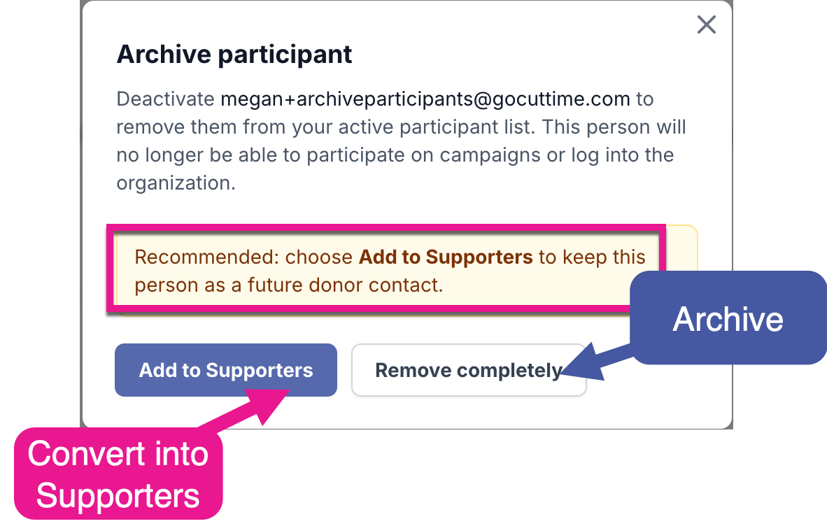 3) You will have the option to "Archive" or move them into the Supporters list and out of your Active Participants.