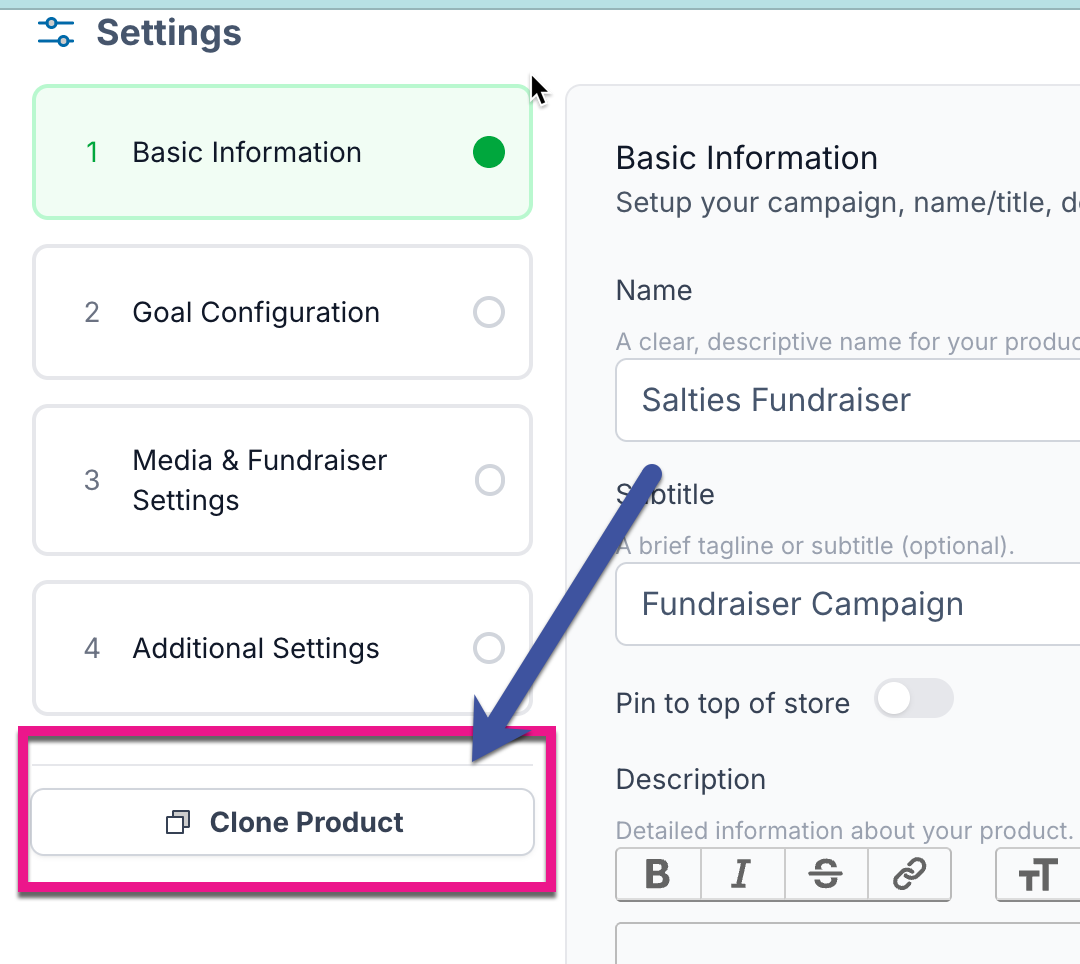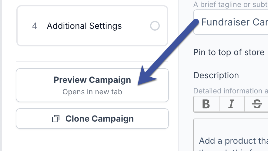 Should you need to duplicate a fundraising campaign, you can do so by cloning it.