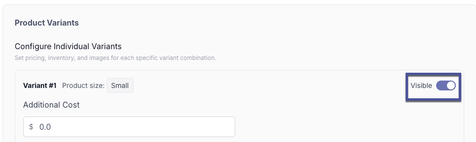 You can also hide a variant if you so choose, which will hide that variant on your store from being purchased.