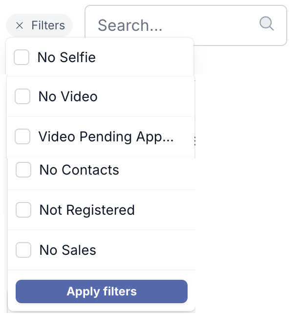 Use the filters to search for a specific participant.