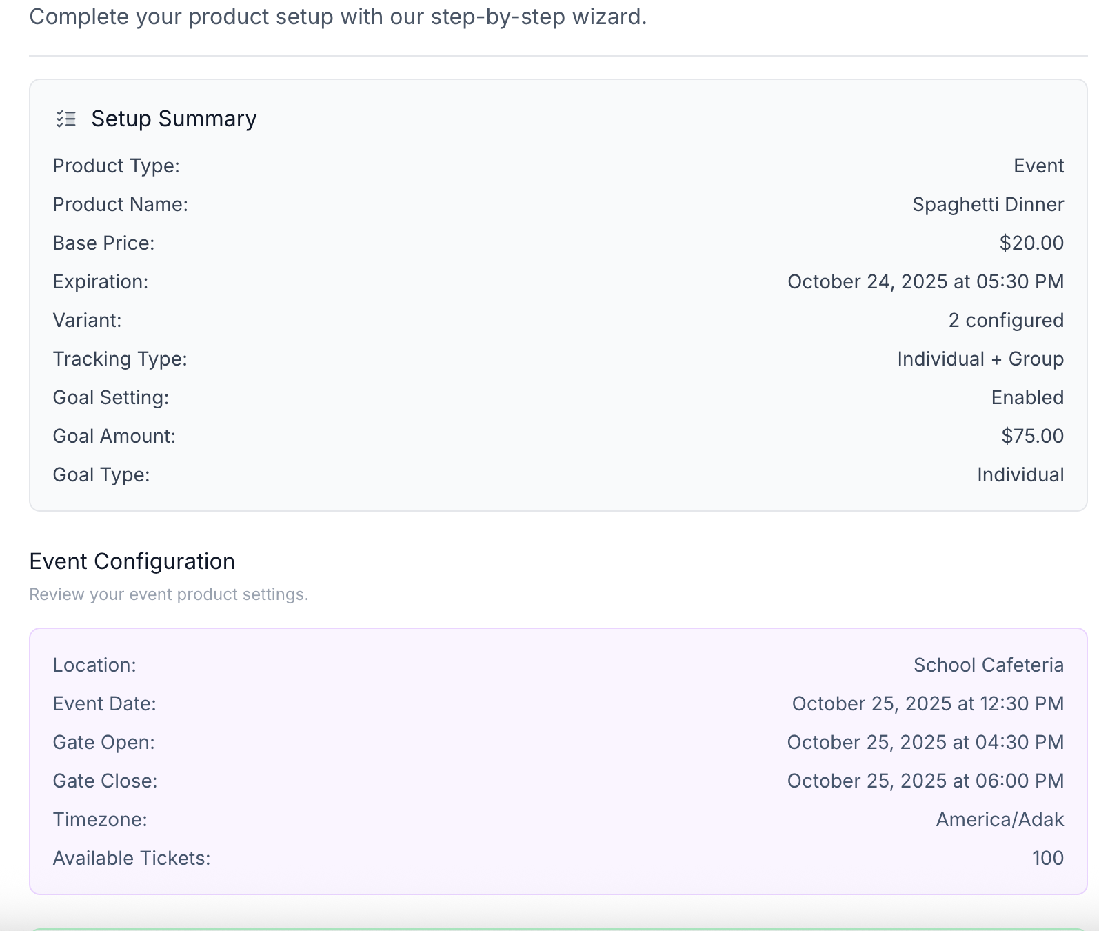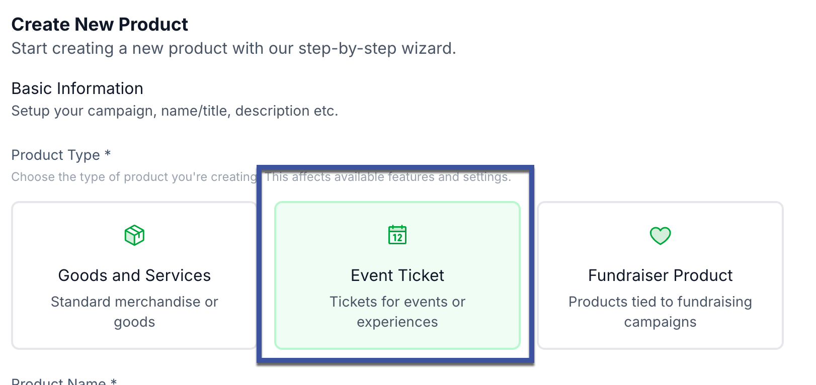 Choose "Event Ticket" and follow the prompts there to begin setting up your product.
