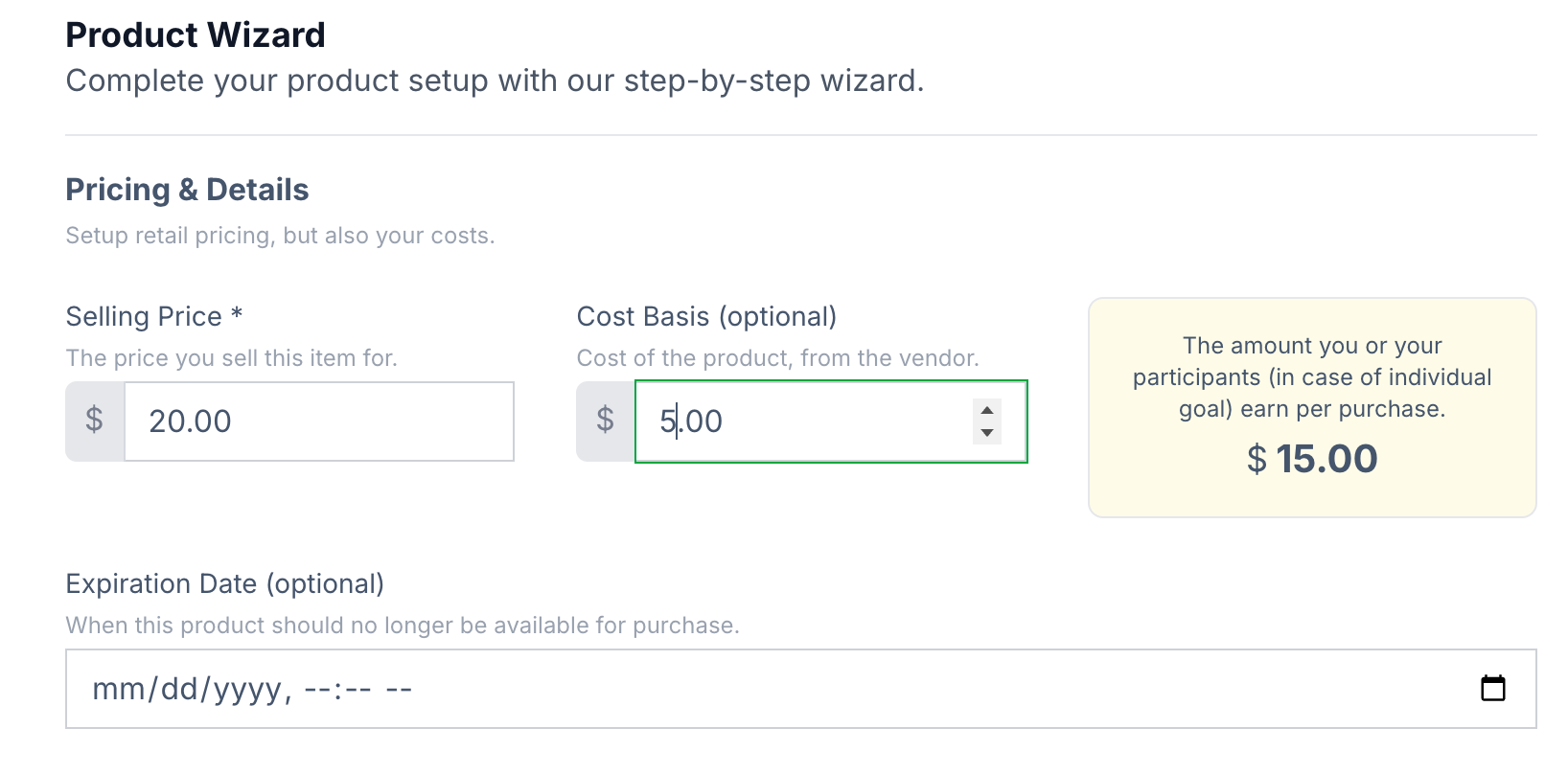 On the goal settings page, you can determine your Goal Amount (number in $ currency with no commas or spaces). Please note that setting a Goal is optional.