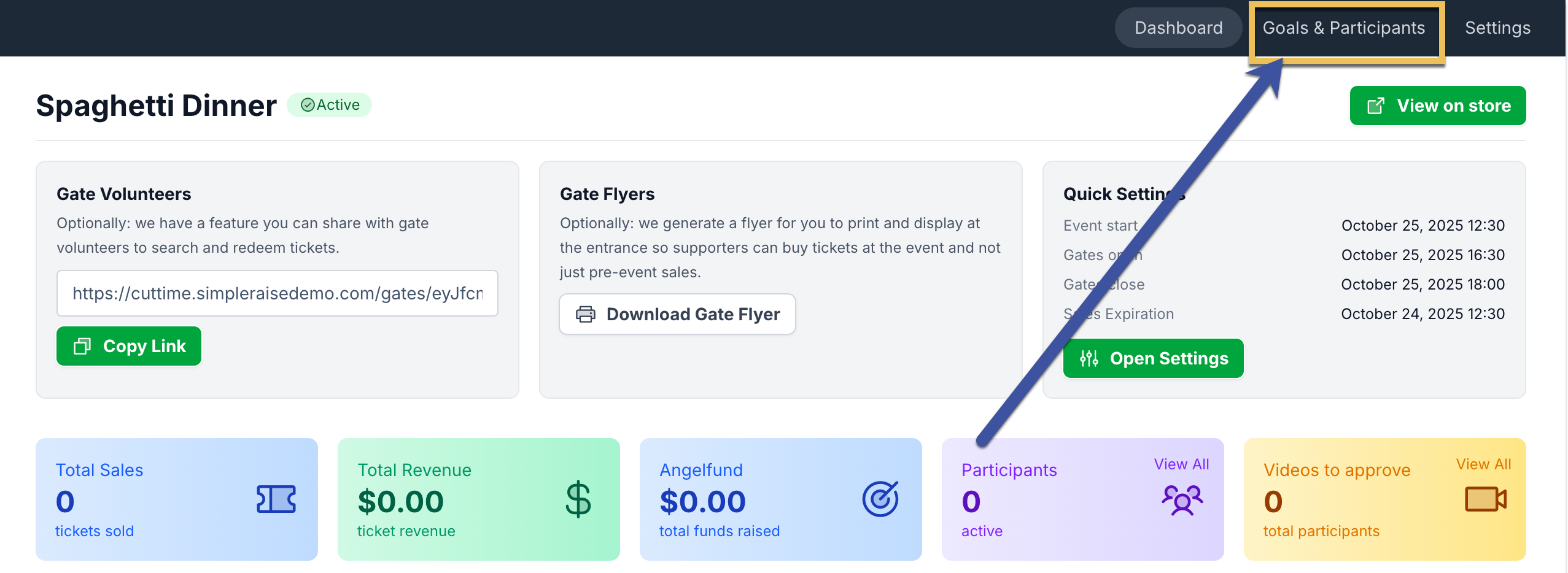 If you have a CutTime account and have chosen to connect it with Simple Raise, you can create an event in CutTime and add ticket sales to it, which will automatically create them as a sellable item in your program’s Simple Raise store.