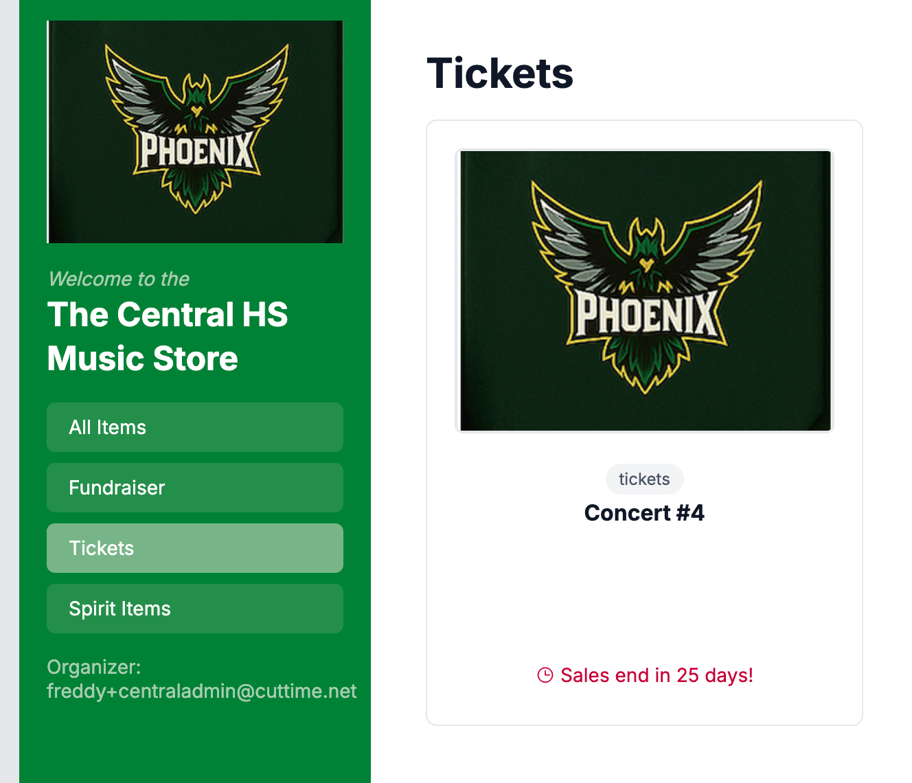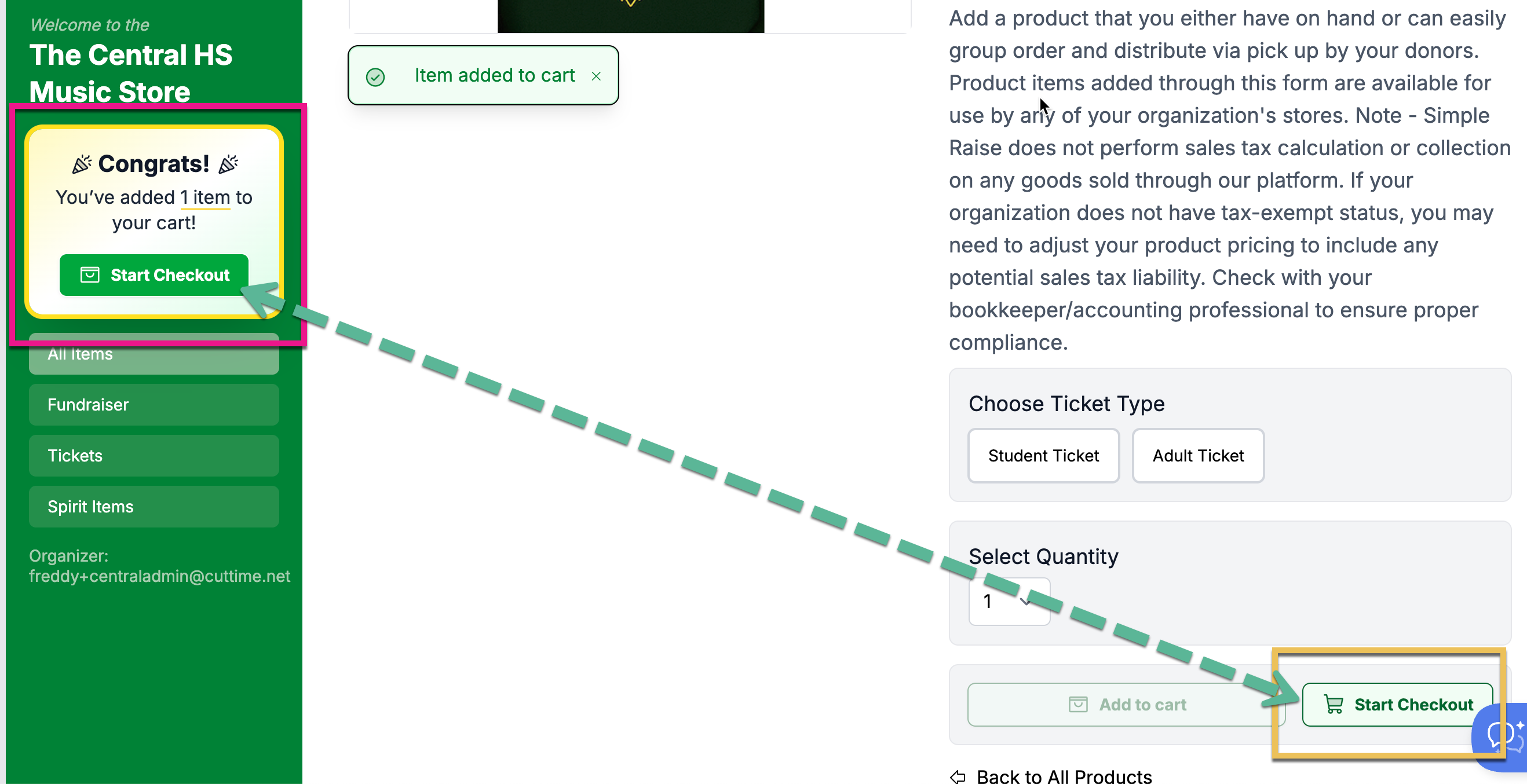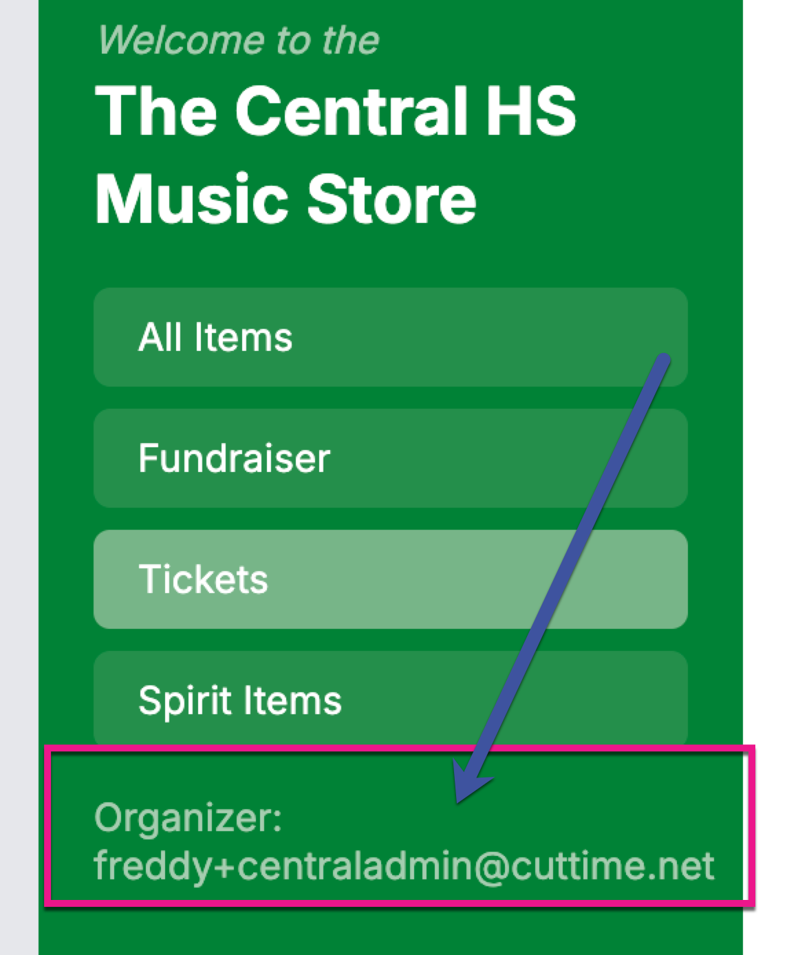 Please note: the Organizer's email for this Store will be displayed in the top left under the store navigation in case they need to reach out with any questions.