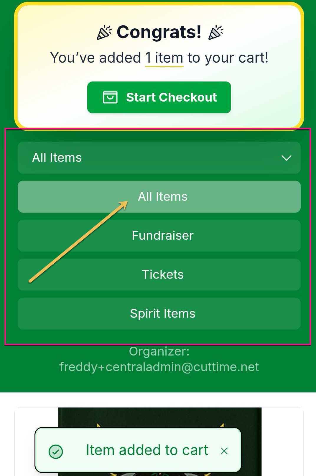 If they would like to purchase other items, not just an Event ticket, they can click through on your Store's items to add them to their cart as well!